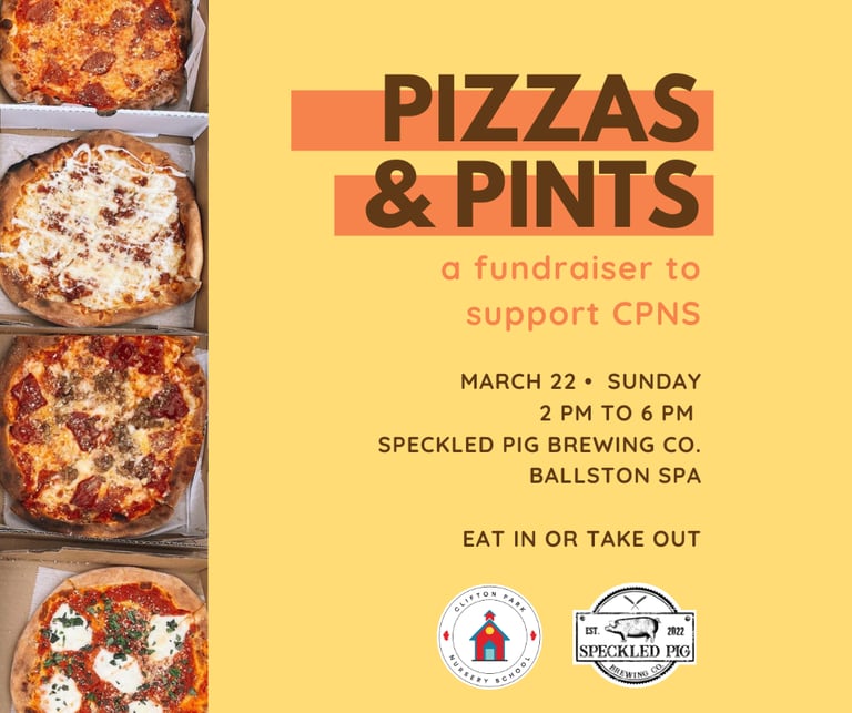 Craving something delicious? Join us at The Speckled Pig Brewing Co. on Sunday, March 22nd, from 2-6pm, and support Clifton Park Nursery School with your order.
